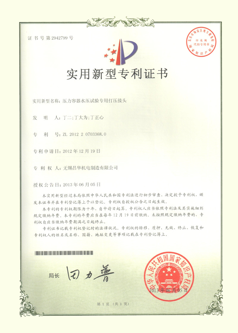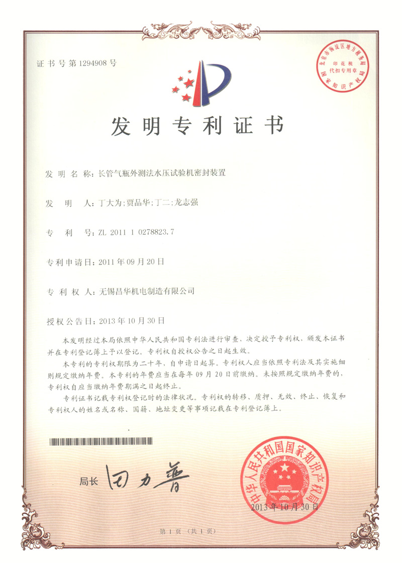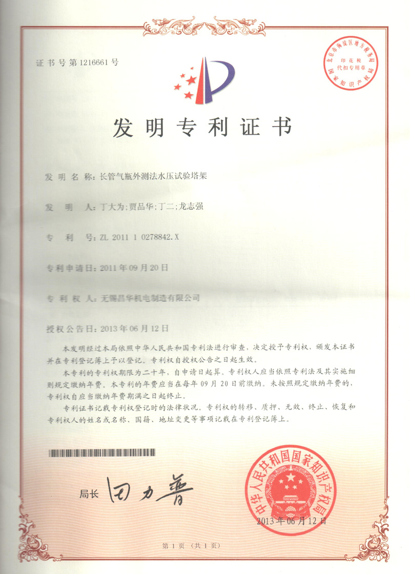 压力容器水压试验专用打压接头 先导式密封螺纹接头 双向送料机构及其双向拨瓶装置发明专利 液化石油气钢瓶自动充排气压头 全自动外测法水压机智能夹爪 全自动印字机 长管气瓶外测法水压试验塔架 长管气瓶外测法水压试验机密封装置