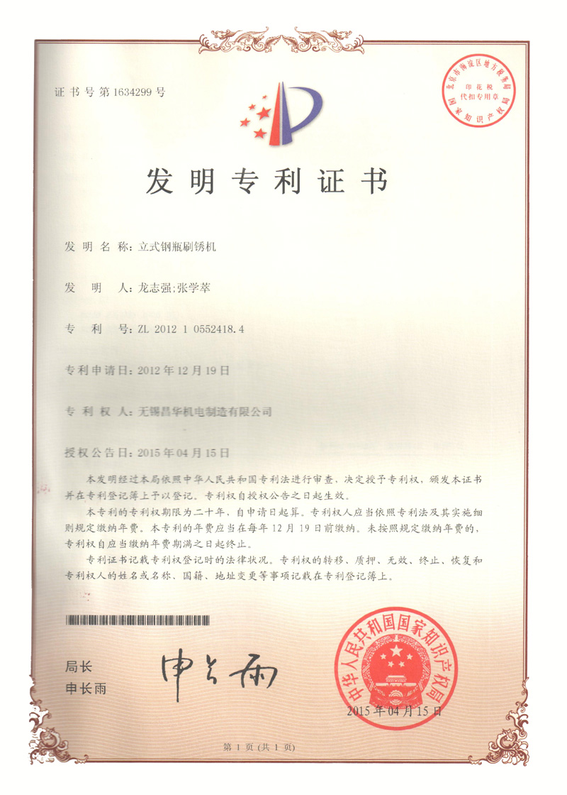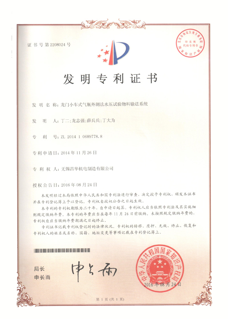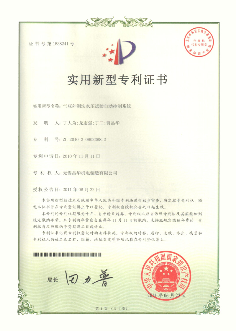 压力容器水压试验专用打压接头 压力容器水压试验专用打压接头 立式钢瓶刷锈机 龙门小车式气瓶外测法水压试验物 立式钢瓶刷锈机发明专利 滚瓶机 钢瓶倒水干燥机发明专利 气瓶排水专用装置发明专利 瓶阀自动装卸机发明专利 扭矩可控式瓶阀装卸机 气瓶外测法水压试验自动控制系统 气瓶水压试验专用压头 长管气瓶干燥塔发明专利 异形组合毛刷 一种液化石油气钢瓶姿态调整装置 一种液化石油气钢瓶悬挂输送线自动上下装置 一种液化石油气钢瓶卧式翻转成立式输送装置 一种液化石油气钢瓶内壁高压清洗装置 一种液化石油气钢瓶阀座定位装置 一种液化气瓶氦质谱检漏装置